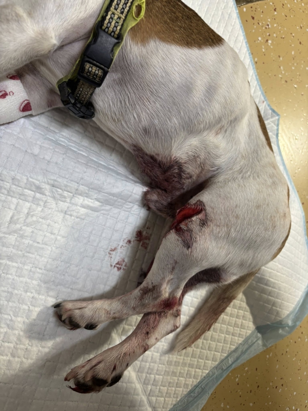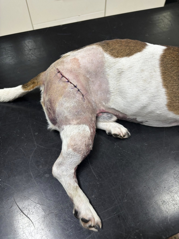 Bobi dnes absolvoval kontrolu a prevaz. Pani doktorka zhodnotila, že Bobi už obväz nepotrebuje a nožka može dýchať. Konečne po 3 dňoch ustúpilo krvácanie J Dostal golier a dalšia kontrola ak bude všetko ok až na stehy.